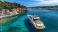 • Luxury yacht anchored in clear waters mediterranean coast travel photography serene environment aerial view nautical adventure