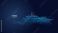 • Abstract 3d illustration of yacht in dark blue. Yachting sport, sailing, business, travel concept. Digital vector mesh looks like starry sky. Low poly wireframe with lines, dots and glowing particles
