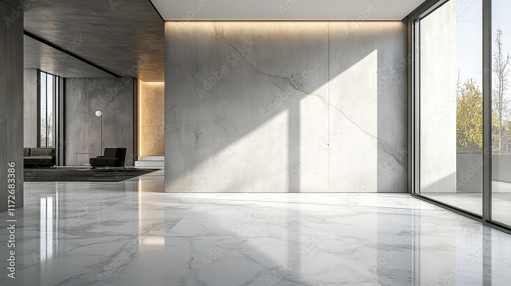Architektura - Wizualizacja pustego przestronnego wnętrza w stylu klasycznym, pusty salon, tło generative ai #1172683386