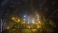 • Widok z drona na nocne Stare Miasto w Toruniu, spowite delikatną mgłą. Podświetlone budynki i zabytkowa architektura lśnią w mgiełce, tworząc tajemniczy i nastrojowy miejski pejzaż.