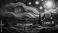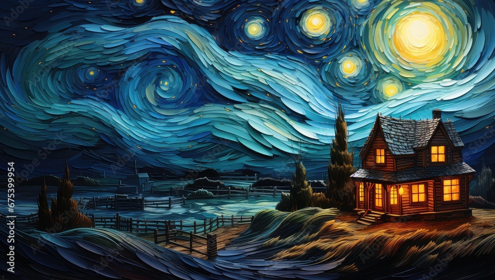 Architektura - Gwiaździsta noc nad małym wiejskim domkiem. #675399954