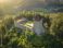 • Wzgórze zamkowe Baszta w Muszynie i zamek po renowacji jesienią. Widok z góry.