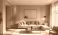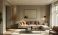 • Jasny nowoczesny salon w bezowych kolorach z wielką kanapa i obrazem.