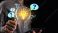 • Businessman holding magnifying glass with glowing light bulb and question marks, representing problem solving, finding solutions, critical thinking, and innovative decision making.