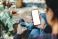 Sport - Mobile phone blank white screen mockup.texting using cell phone.background empty space for... #1745169224