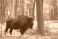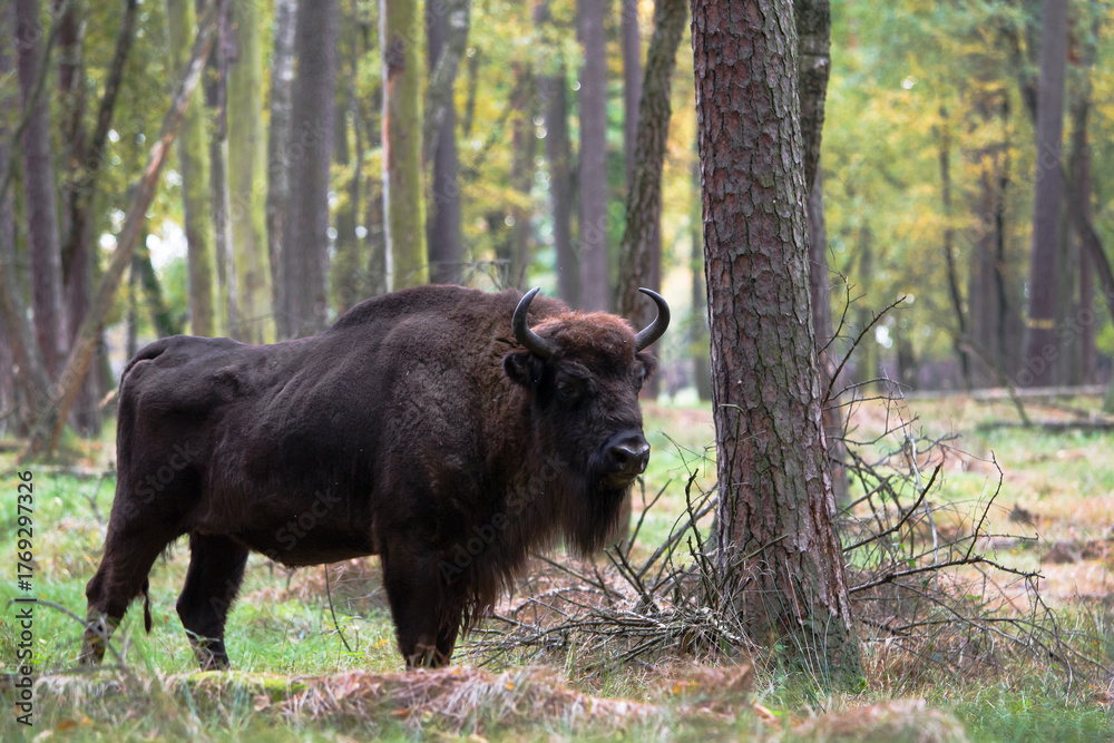 Zwierzęta - Stado żubrów w starym jesiennym lesie #1769297326