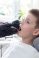 • Ręce dentysty w jednorazowych czarnych gumowych rękawiczkach trzymają lusterko dentystyczne. Chłopiec w wieku szkolnym siedzi na fotelu z otwartymi ustami. Lekarz ogląda zęby chłopca.