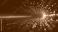 • Digital tunnel effect with orange and blue glowing particles