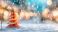 • Festive orange paper tree nestled in snowy landscape with blurred lights