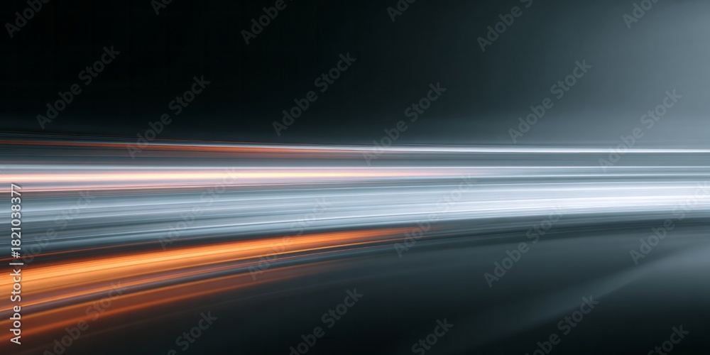 • Streaks of bright white and warm orange light blur across a dark, abstract background indicating rapid motion.