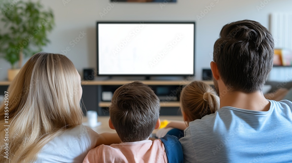 Do Restauracji - A family enjoying movie night on a couch, with a blank TV screen ready for customization. #1285942907