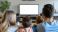 • A family enjoying movie night on a couch, with a blank TV screen ready for customization.