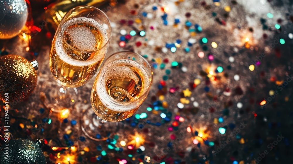 Do Restauracji - Two elegant glasses of champagne with festive Christmas decorations in the background, creating a... #1294451524