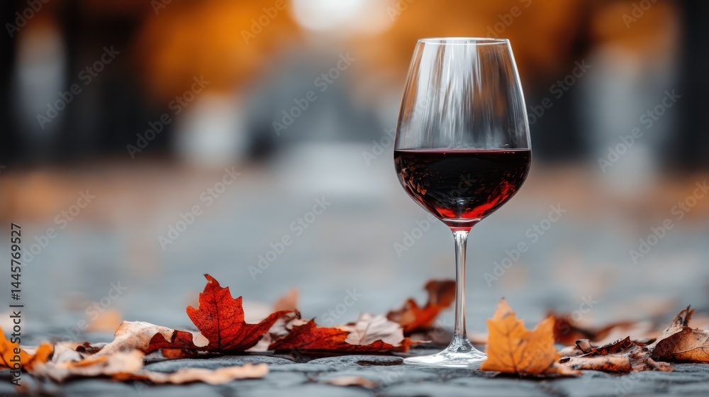 Do Restauracji - A captivating image of a glass of red wine gracefully positioned among a spread of fallen autumn... #1445769527