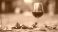 • A captivating image of a glass of red wine gracefully positioned among a spread of fallen autumn leaves, representing the warmth and nostalgia of the fall season.