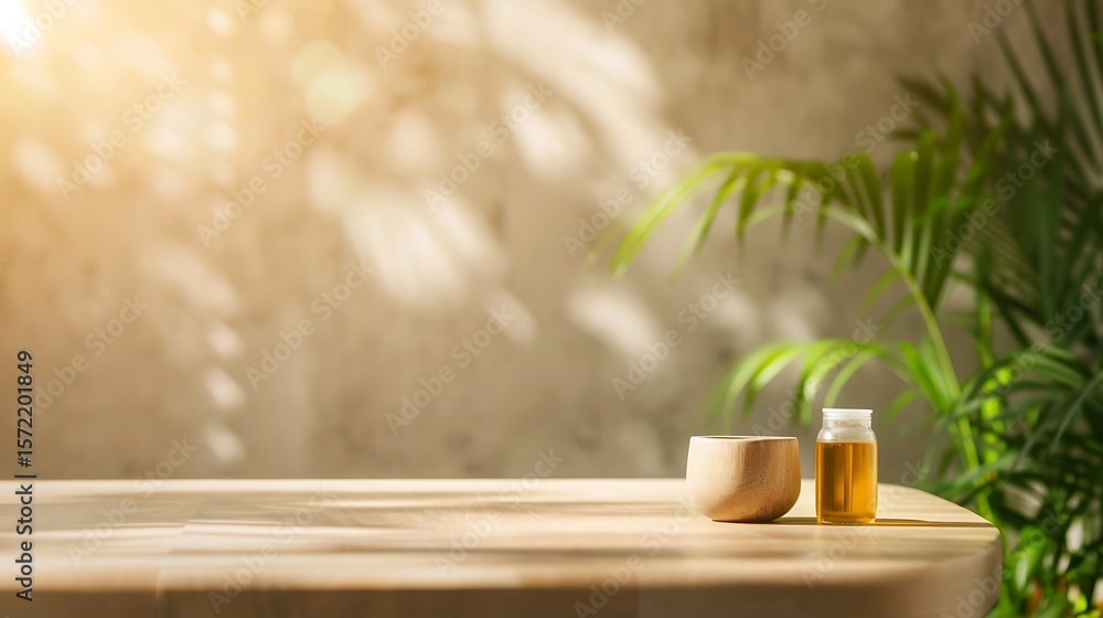 Natural Wellness, Tea Bowl and Essential Oil Bottle