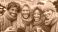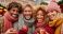 • Four friends enjoying drinks at a festive outdoor gathering.
