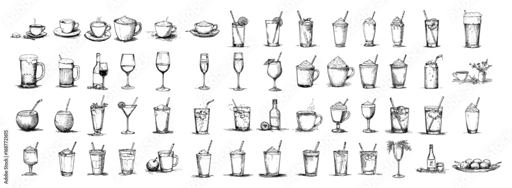 Do Restauracji - Drinks and beverages hand drawn doodle sketch icon set #1687721615