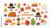 Do Restauracji - Colorful illustration of Thanksgiving dinner elements: turkey, pie, apples, corn, wine, and... #1728612233