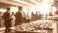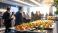 • Blurred scene of people mingling with appetizers at a bright, fancy gathering
