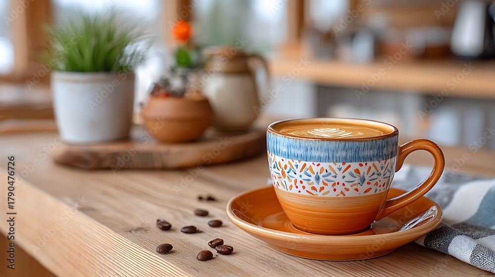 Do Restauracji - Spilled Coffee on a Cozy Cafe Table with Decorative Plants and Accessories #1790476726