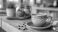 • Spilled Coffee on a Cozy Cafe Table with Decorative Plants and Accessories