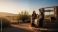• Woman with pitcher listening to Jesus sitting by an ancient well in warm evening light