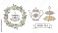 • Elegant tea party vector elements with floral wreath, porcelain teapot, and cake stand for cafe branding