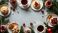 • photograph of Christmas desserts including cookies, cakes, and hot drinks