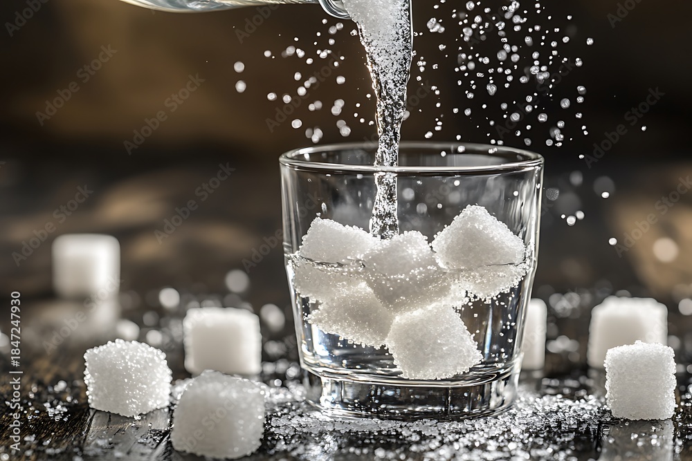 • In the glass, sugar cube is being poured upon for a sweet beverage