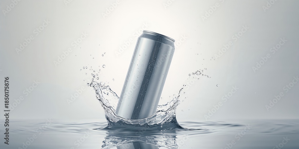 • Tall, slender soda can in a minimalist setting packaging design