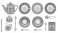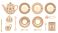 • Vintage tea set vector illustration. Retro 70s floral pattern kitchenware. Knolling layout teapot cups saucers. Flat lay collection isolated on white background. Ceramic tableware.