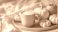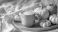 Do Restauracji - Cozy autumn scene with latte art coffee, white pumpkins, and dried flowers on a textured tray in... #1891826547