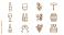 • Minimalist wine icon set in black and white line art featuring wine bottles, glasses, grapes, corkscrew, wooden barrel, and champagne. Vector illustrations for winery, vineyard, and bar branding.