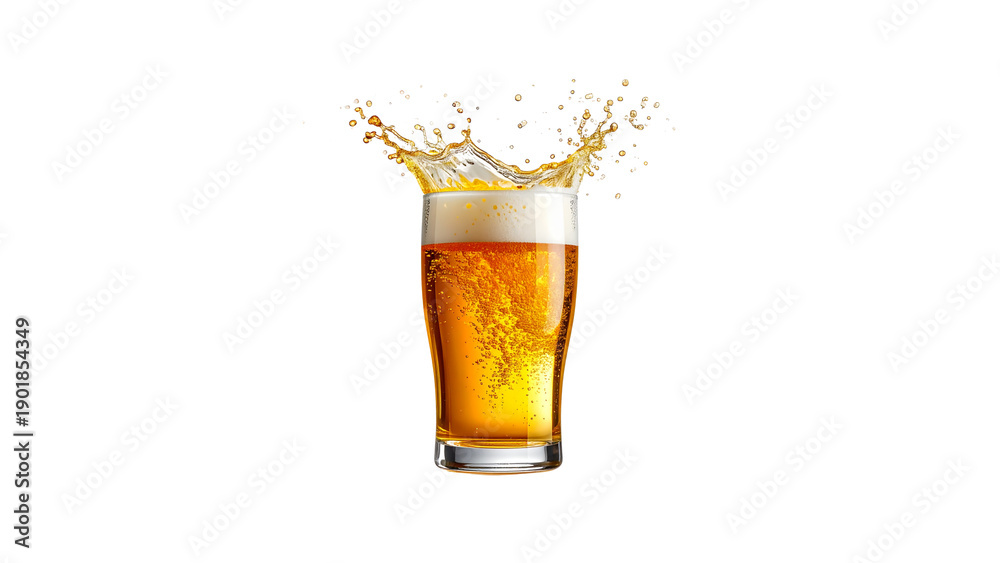 Fresh orange juice in a clear glass bottle mockup with black cap isolated on white background.