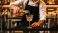 • Bartender pours drink into glass at busy bar in the evening, showcasing cocktail preparation skills in vibrant atmosphere