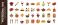 • Professional Food and Drink Flat Vector Icon Set with 30 Earthy Toned Symbols Including Chef Hat, Utensils, Meat, Vegetables, Fruits, Beverages, and International Cuisine for Restaurant Menus.