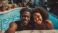 • Happy Young African American Couple Leaning On Edge Of Swimming Pool In Their Backyard, Viewed From A High Angle.