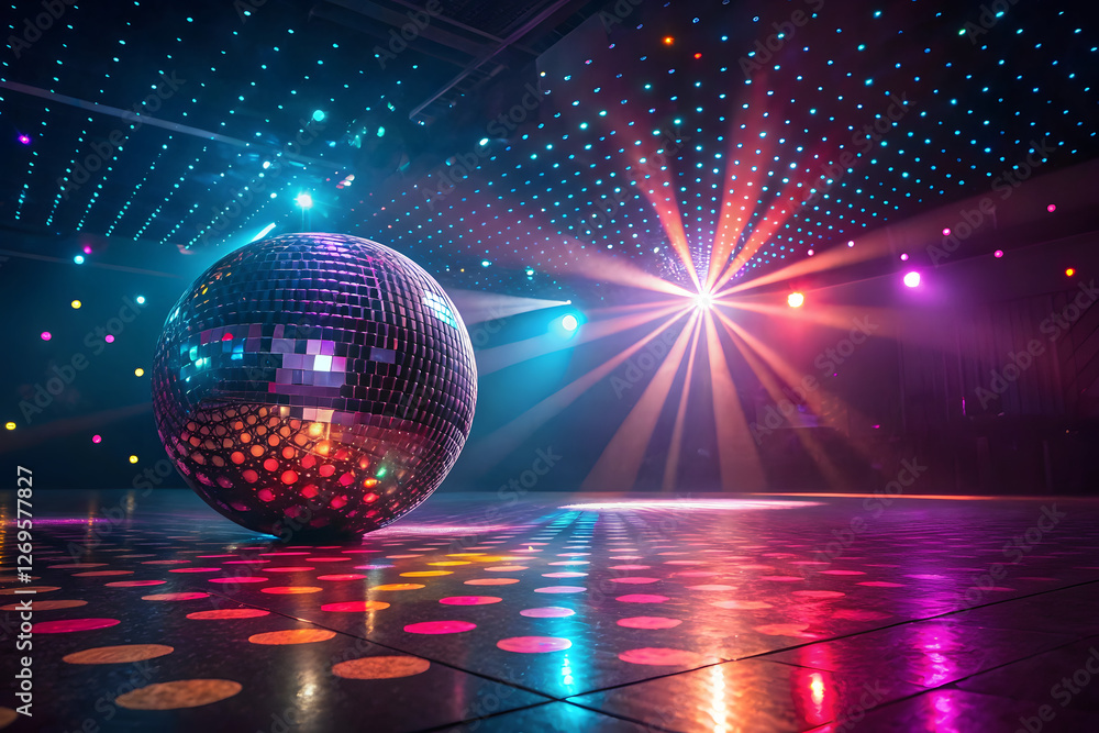 Do Szkoły Tańca - A disco ball with multicolored lights on the bottom #1269577827