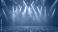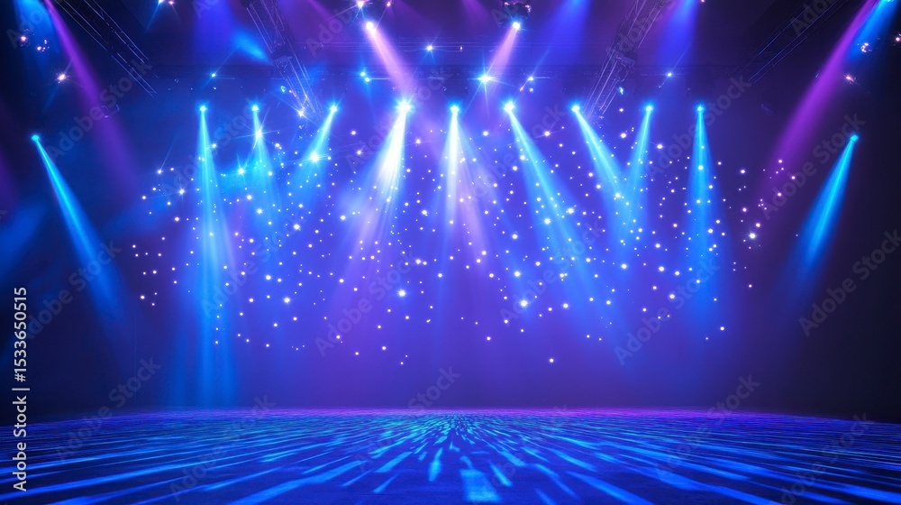 • Blue and purple stage lighting with spotlights and sparkles on dark background.