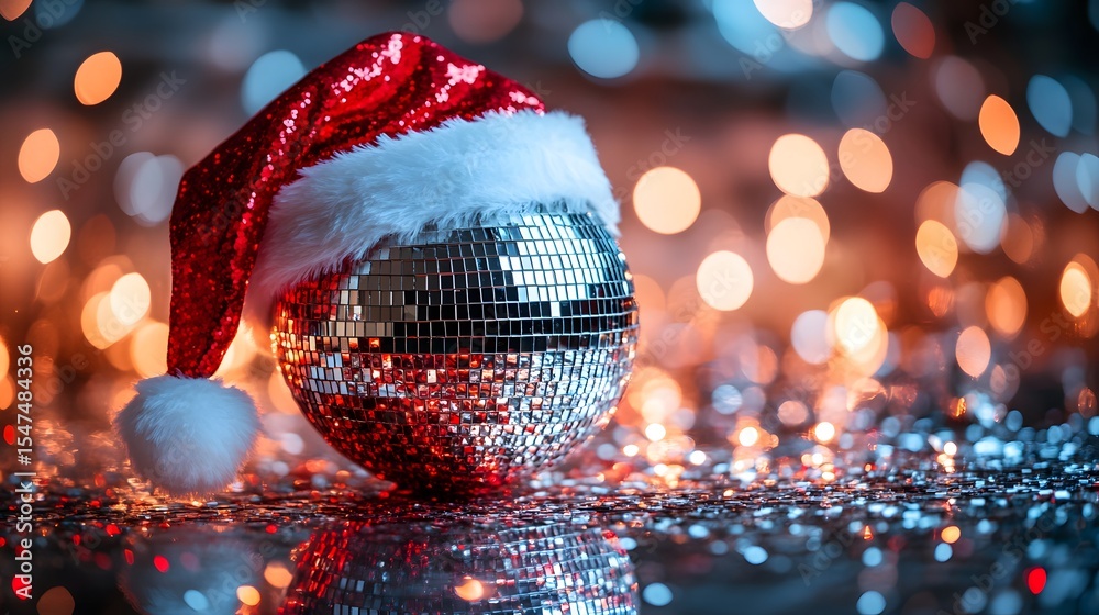 Do Szkoły Tańca - Festive Disco Ball with Santa Hat Amid Holiday Lights #1547484336