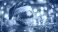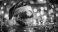 • Festive Disco Ball with Santa Hat Amid Holiday Lights