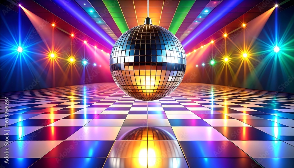 Do Szkoły Tańca - Colorful disco ball in a vibrant dance floor #1619756237
