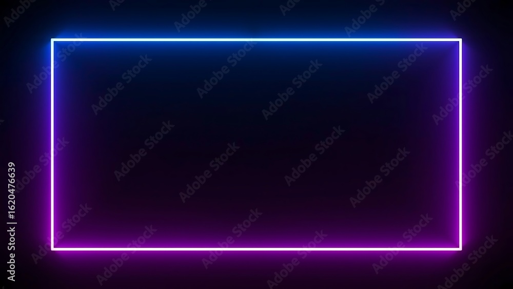 • Photo of blue and pink neon rectangle frame glowing