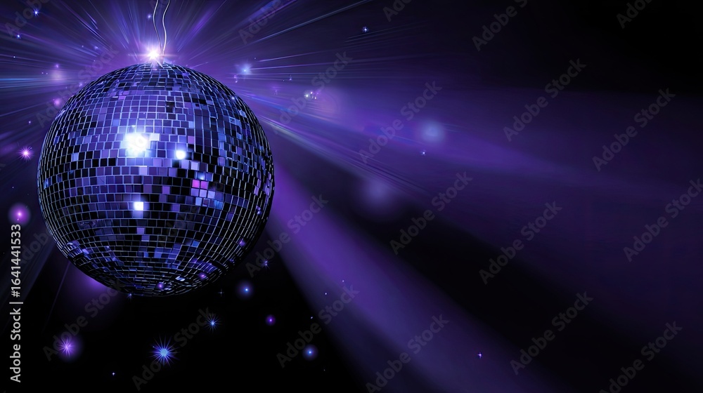 Do Szkoły Tańca - Sparkling purple disco ball against a dark background. #1641441533