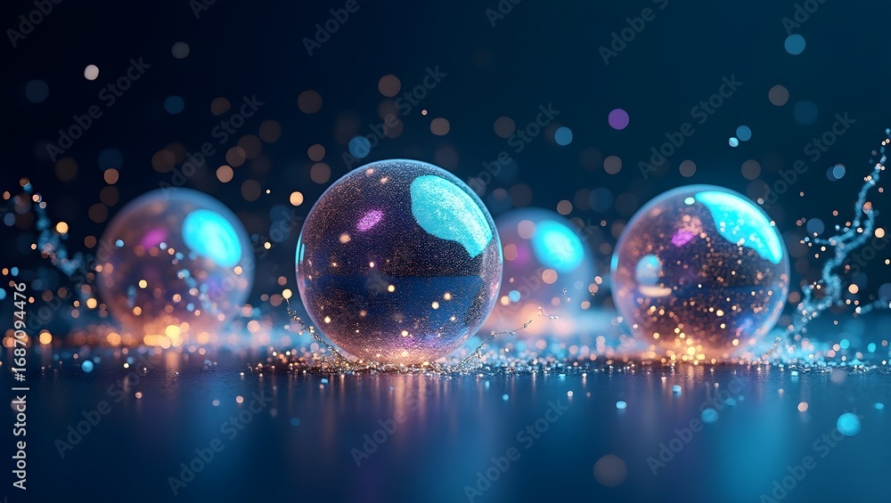 • christmas ball on blue background, new year background with disco ball, Iridescent ,3D spheres with shimmering metallic surface,