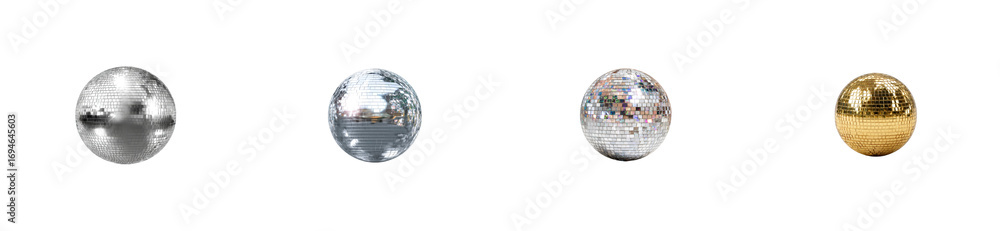 Do Szkoły Tańca - Four Disco Balls Isolated on Black, cut out #1694645603