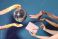 Do Szkoły Tańca - Female hands with disco ball, high heels and bag on blue background #1720558997