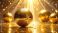 • Elegant golden disco ball with shimmering lights background for celebration