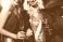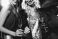 • cropped view of man pouring champagne from bottle into glasses for glamor girls